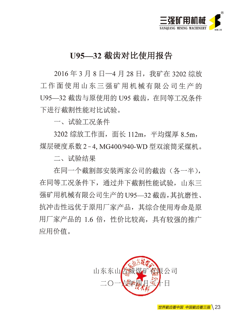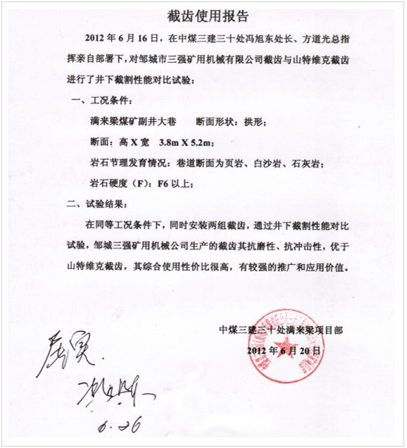 截齒對(duì)比試用報(bào)告